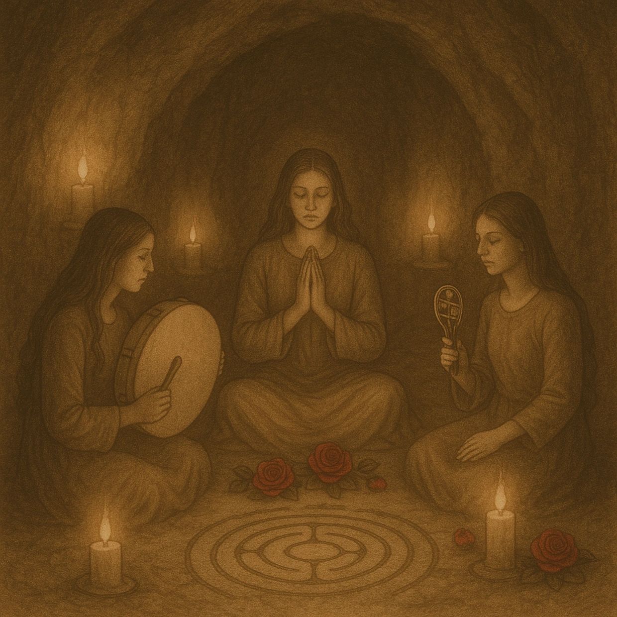 At the heart of this work, we call upon the Black Madonna—she who dwells in the hidden caves, the womb of the Earth, the place of exile and forgotten wisdom. She is the Mother who holds us in the darkest nights of the soul, revealing that shadow is not absence of light but its most fertile soil. In her embrace, we remember that descent is not punishment—it is initiation. By working with her presence, we are guided to root ourselves in truth, to reclaim the exiled feminine, and to discover the holy power that is born in the dark